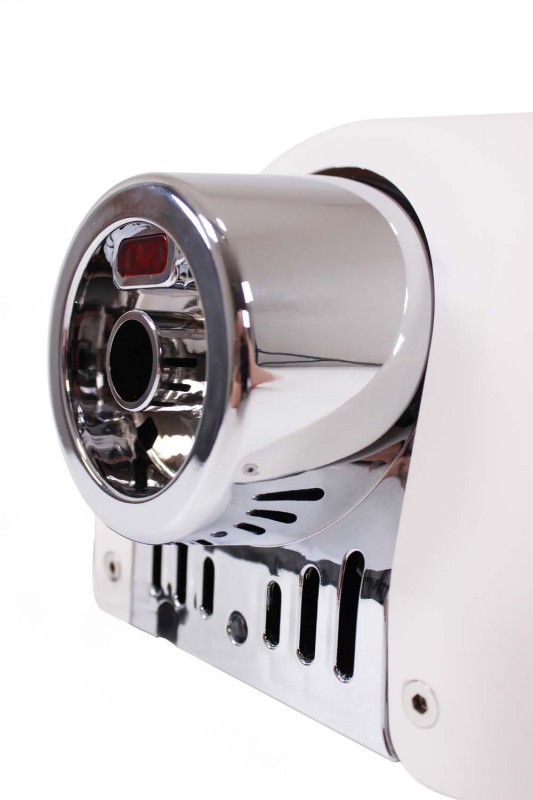 Osoušeč rukou BOOSTER se od jiných osoušečů vyznačuje výraznou pochromovanou tryskou kruhového tvaru. Díky silnému 550 W motoru je vysušení rukou velmi rychlé.