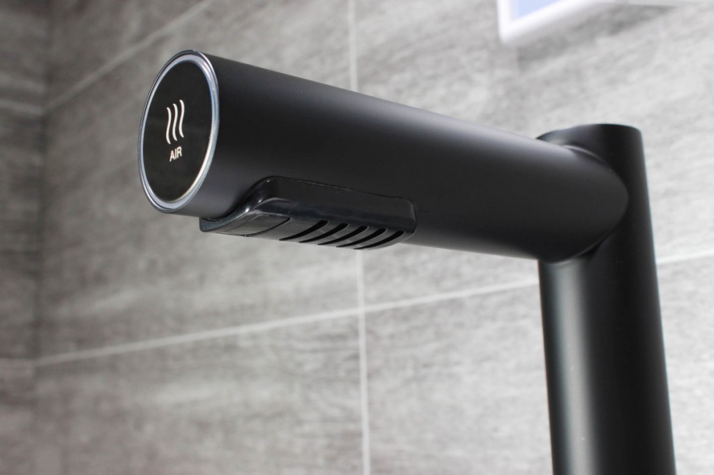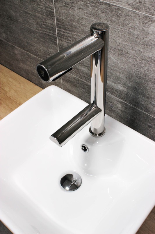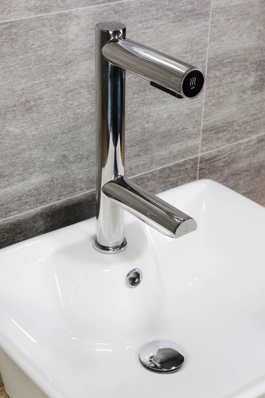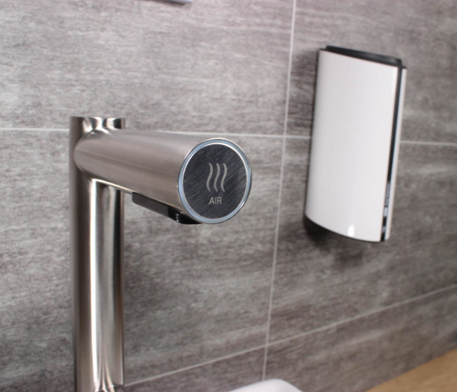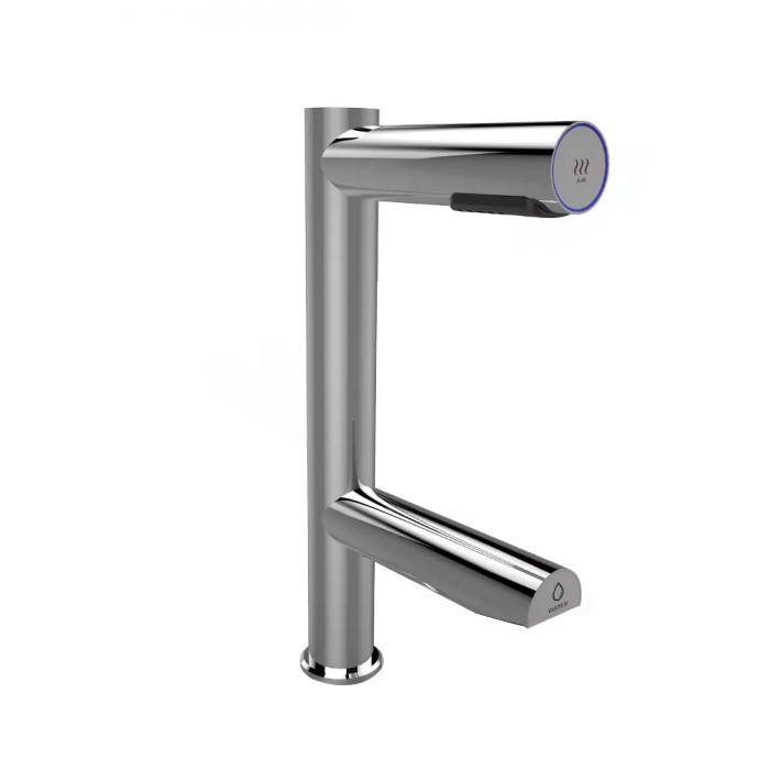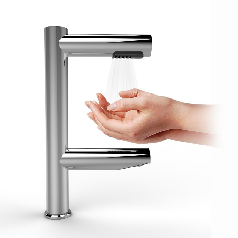 Hygienické umytí a osušení rukou nebylo nikdy jednodušší. Vložením rukou pod vodovodní baterii začne automaticky téct voda o předem nastavené teplotě. Hned nad automatickou baterií se nachází vyústění trysky vysoušeče. Spuštění je také bezkontaktní, stačí vsunout ruce a pohybovat s nimi podobně jako při mytí. Na přední části ramena vysoušeče se nachází podsvětlený kroužek. Kroužek pulzuje bílým světlem, čímž upozorňuje na funkci vysoušeče. Při používání svítí modře.