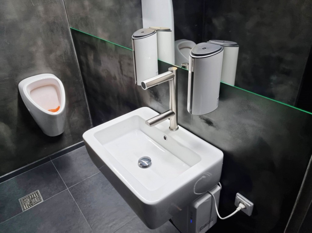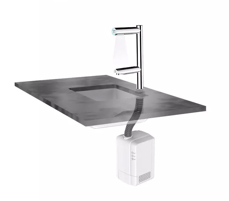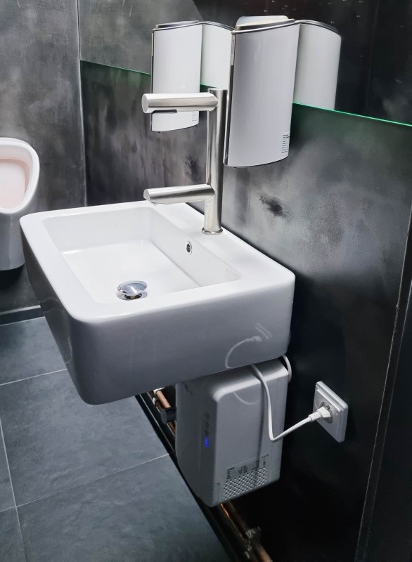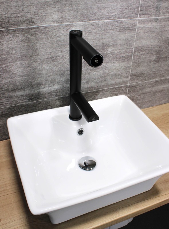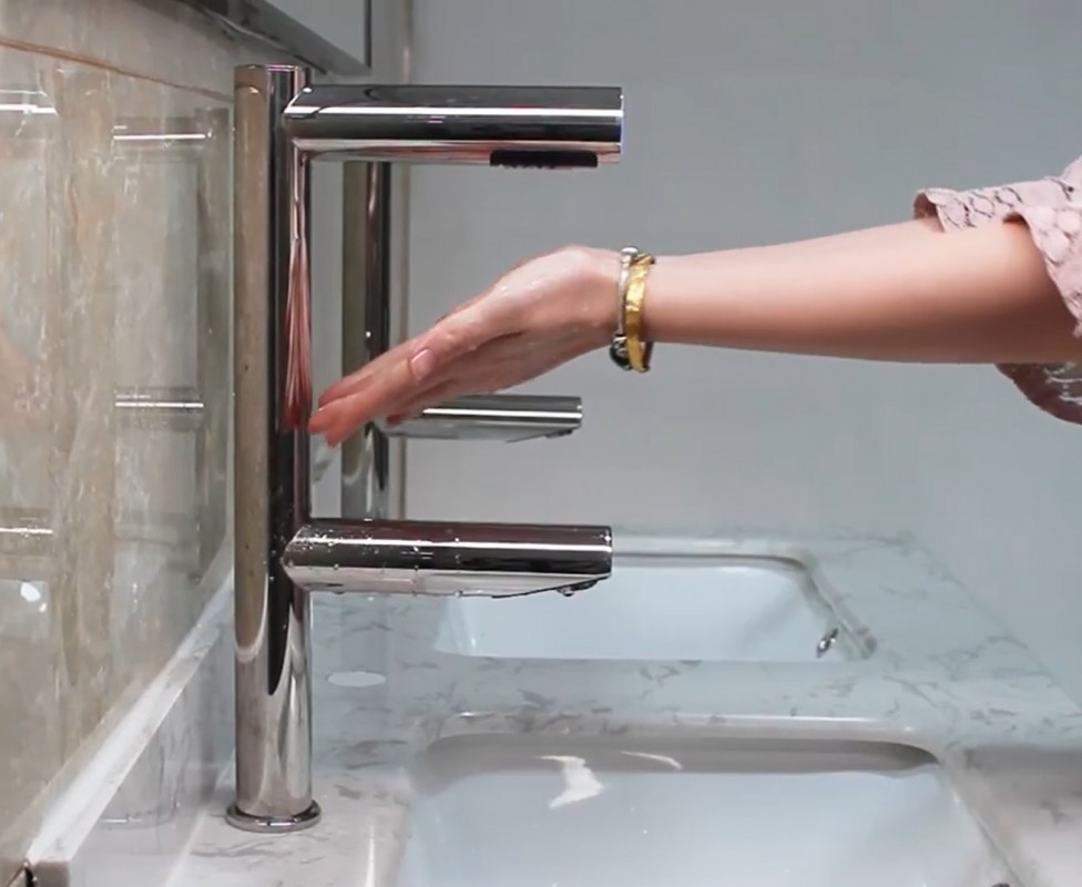 Hygienické umytí a osušení rukou nebylo nikdy jednodušší. Vložením rukou pod vodovodní baterii začne automaticky téct voda o předem nastavené teplotě. Hned nad automatickou baterií se nachází vyústění trysky vysoušeče. Spuštění je také bezkontaktní, stačí vsunout ruce a pohybovat s nimi podobně jako při mytí. Na přední části ramena vysoušeče se nachází podsvětlený kroužek. Kroužek pulzuje bílým světlem, čímž upozorňuje na funkci vysoušeče. Při používání svítí modře.