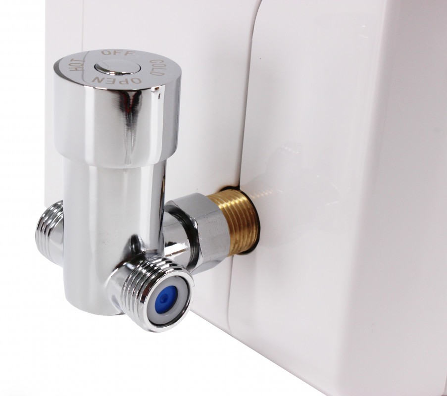 Součástí každého balení vysoušeče rukou s vodovodní baterií 2v1 je směsovací ventil umožňující nastavení příjemné teploty vody. Jet Dryer DUO je rovněž možné rovnou připojit pouze na studenou vodu.