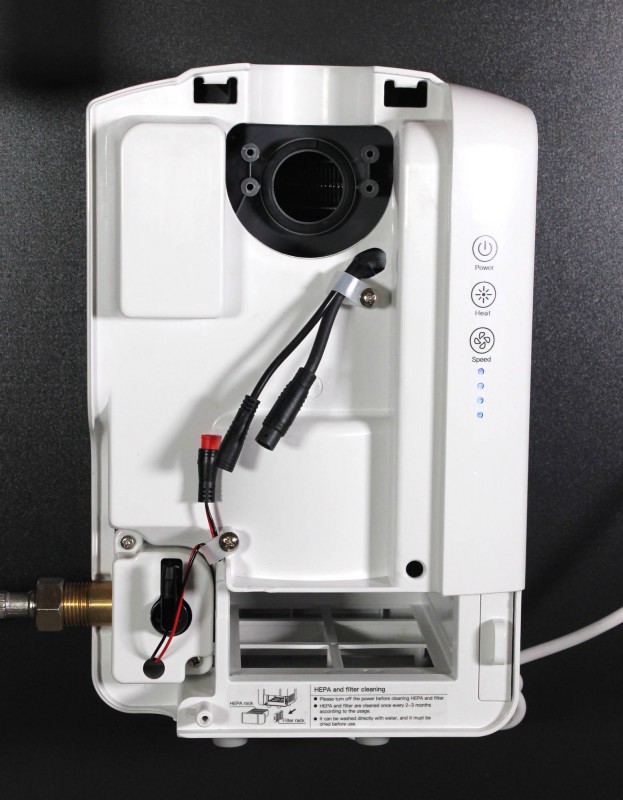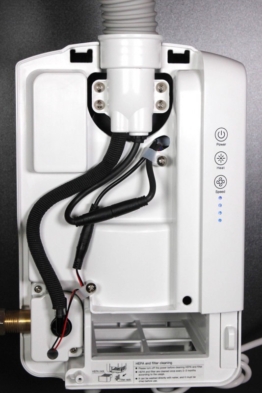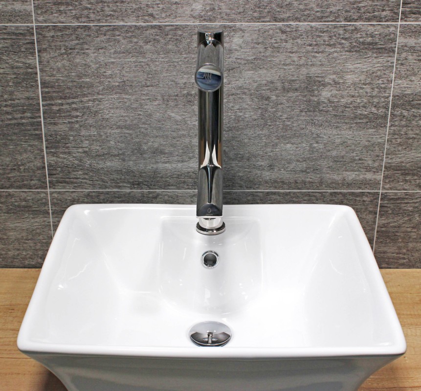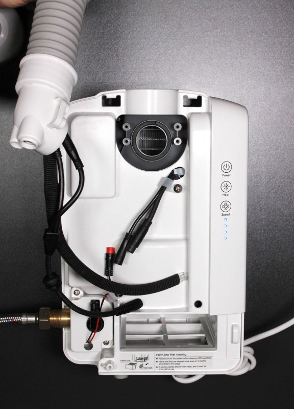 Tělo baterie s vysoušečem ve tvaru písmene F je vyrobeno z kovu nebo kvalitní nerezové oceli. Jednotka vysoušeče je bezpečně ukryta pod umyvadlem, mimo dosah případných vandalů. Vysoušeč tak zároveň zbytečně nezabírá místo.