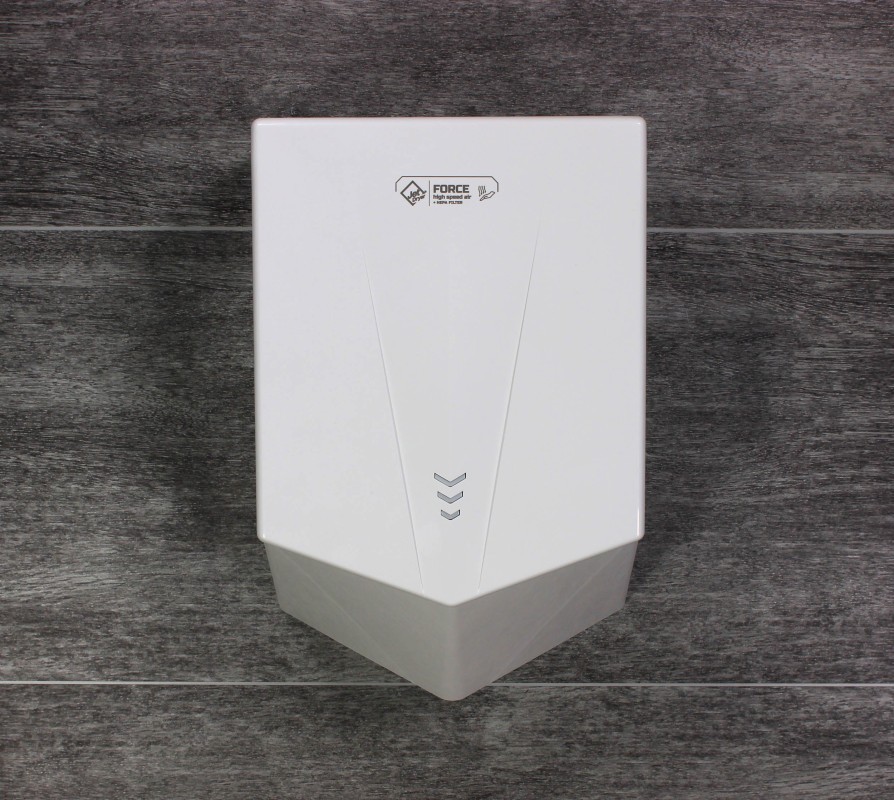 Spuštění osoušeče Jet Dyrer FORCE je plně automatické pomocí infračerveného senzoru. Už žádné mačkání tlačítek – stačí umístit ruce pod vysoušeč. Bezkontaktní provoz je hygienický a komfortní, navíc snižuje opotřebení přístroje. Jednoduchý tvar těla navíc usnadňuje čištění a brání usazování nečistot. Vysoušeč Jet Dyrer FORCE je vybavený HEPA filtre, díky tomu je vzduch vyfukovaný na ruce vždy maximálně hygienický a nezávadný. HEPA filtr zachytí až 99,97% bakterii virů a dalších drobných částic.