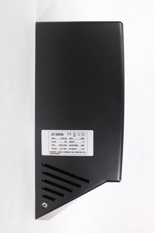 Jet Dryer FORCE dosahuje rychlosti vzduchu až 150 m/s, což zajišťuje rychlé vysušení rukou do 15 sekund. Přes svůj výkon si zachovává nízkou hlučnost a pohodlné používání. Rychlost vzduchu je optimalizovaná tak, aby nedocházelo k nepříjemnému pocitu na pokožce, a zároveň poskytuje maximální efektivitu.