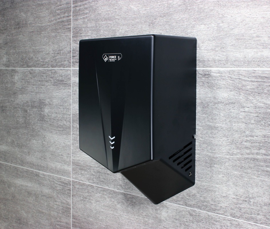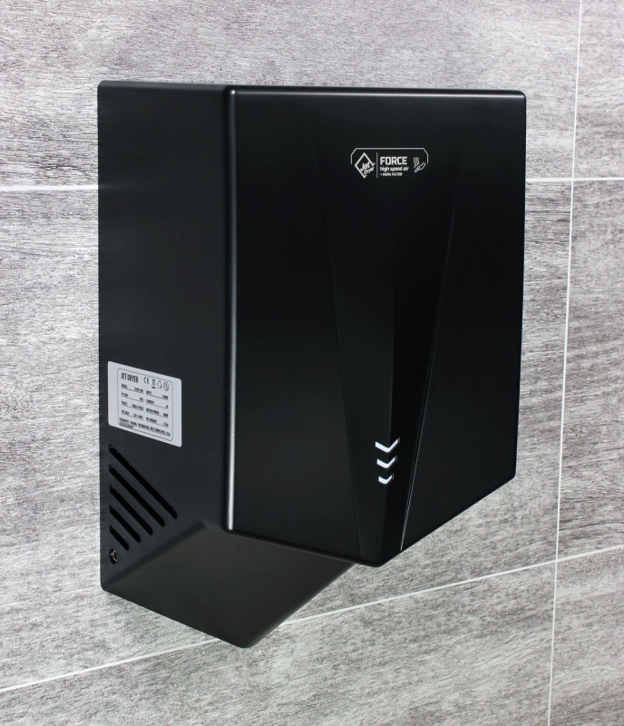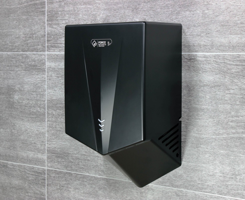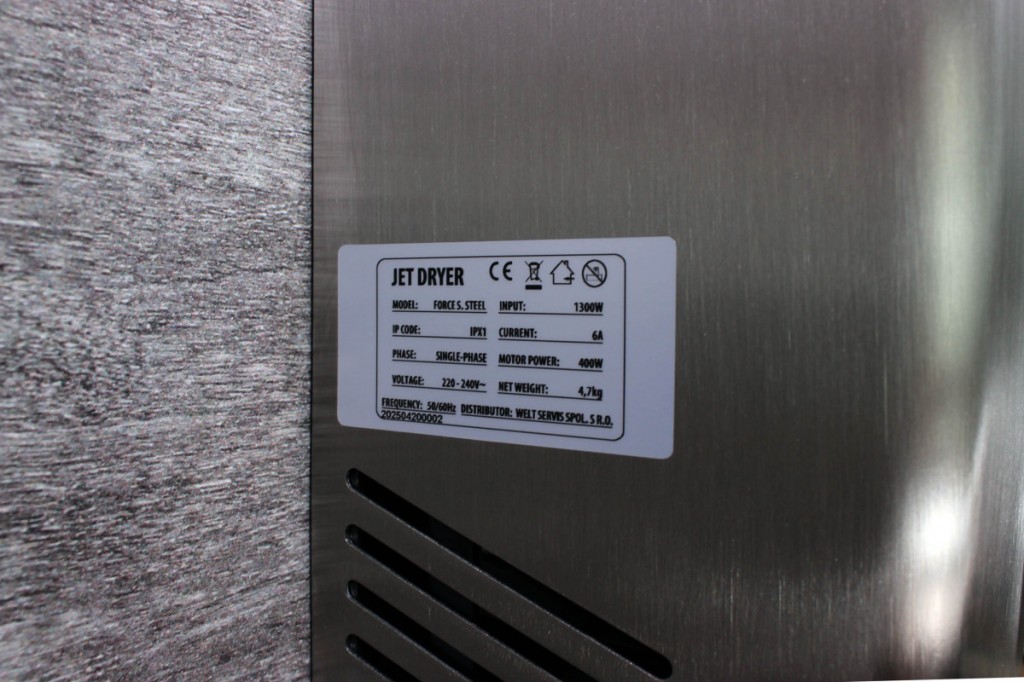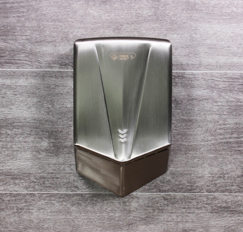 Jet Dryer FORCE je k dispozici ve variantě s kartáčovaným nerezovým povrchem nebo odolným bílým nebo černým ABS plastem. Je tak vhodný i do prostředí, kde je zvýšené riziko vandalismu nebo hrubšího zacházení. Kryt z nerezové oceli třídy 304 zaručuje dlouhou životnost a snadnou údržbu.