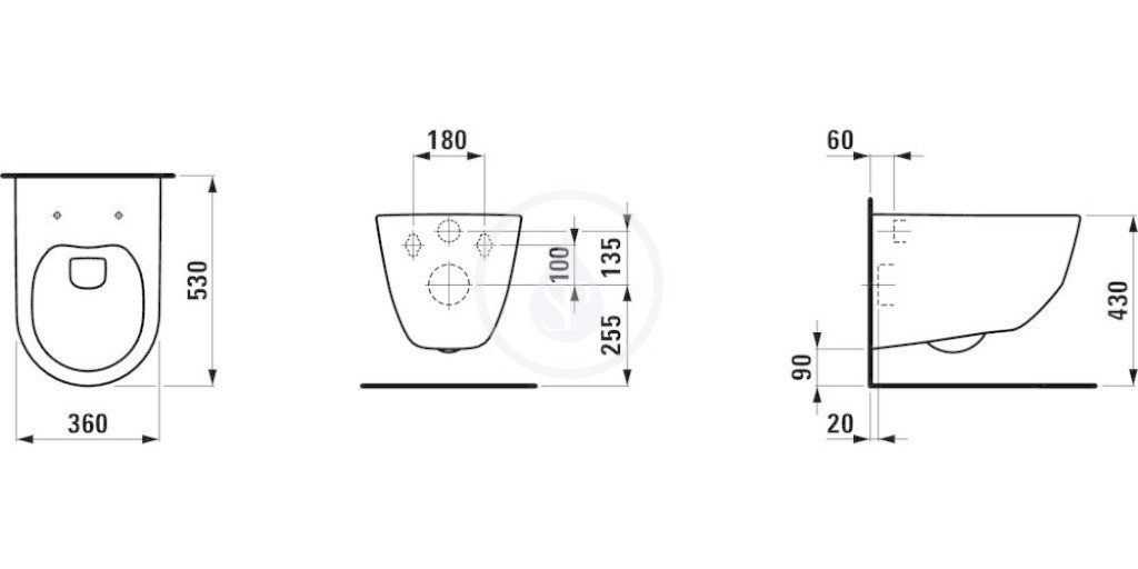 Pro Závěsné WC, 530x360 mm, bílá (H8209560000001) - Laufen