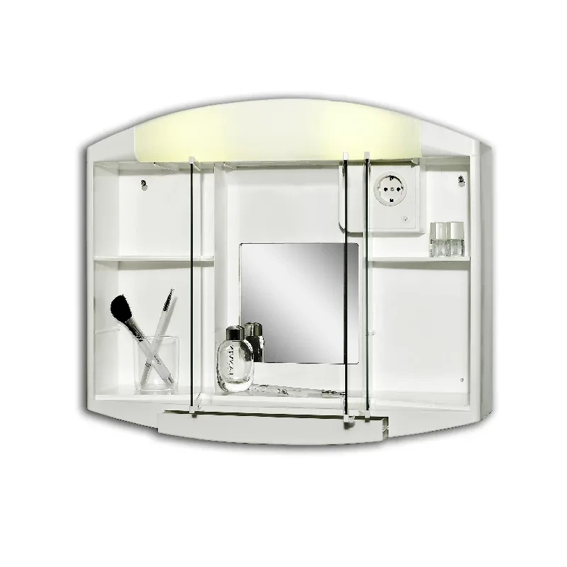 Vybavení: 3 křišťálové skleněné zrcadlové dveře, zásuvka, bezpečnostní zásuvka, vnitřní zrcadlo / nastavitelné bariérové poličky