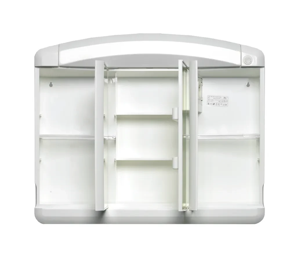 Vybavení: 3 křišťálové skleněné zrcadlové dveře s 3D zrcadlovým efektem, nastavitelné bariérové poličky, zásuvka