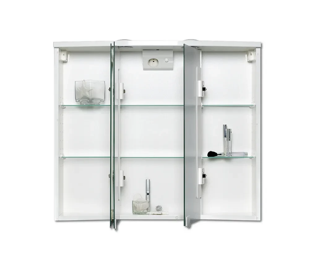 Vybavení: 3 křišťálové skleněné zrcadlové dveře s 3D zrcadlovým efektem, nastavitelné skleněné poličky, bezpečnostní zásuvka