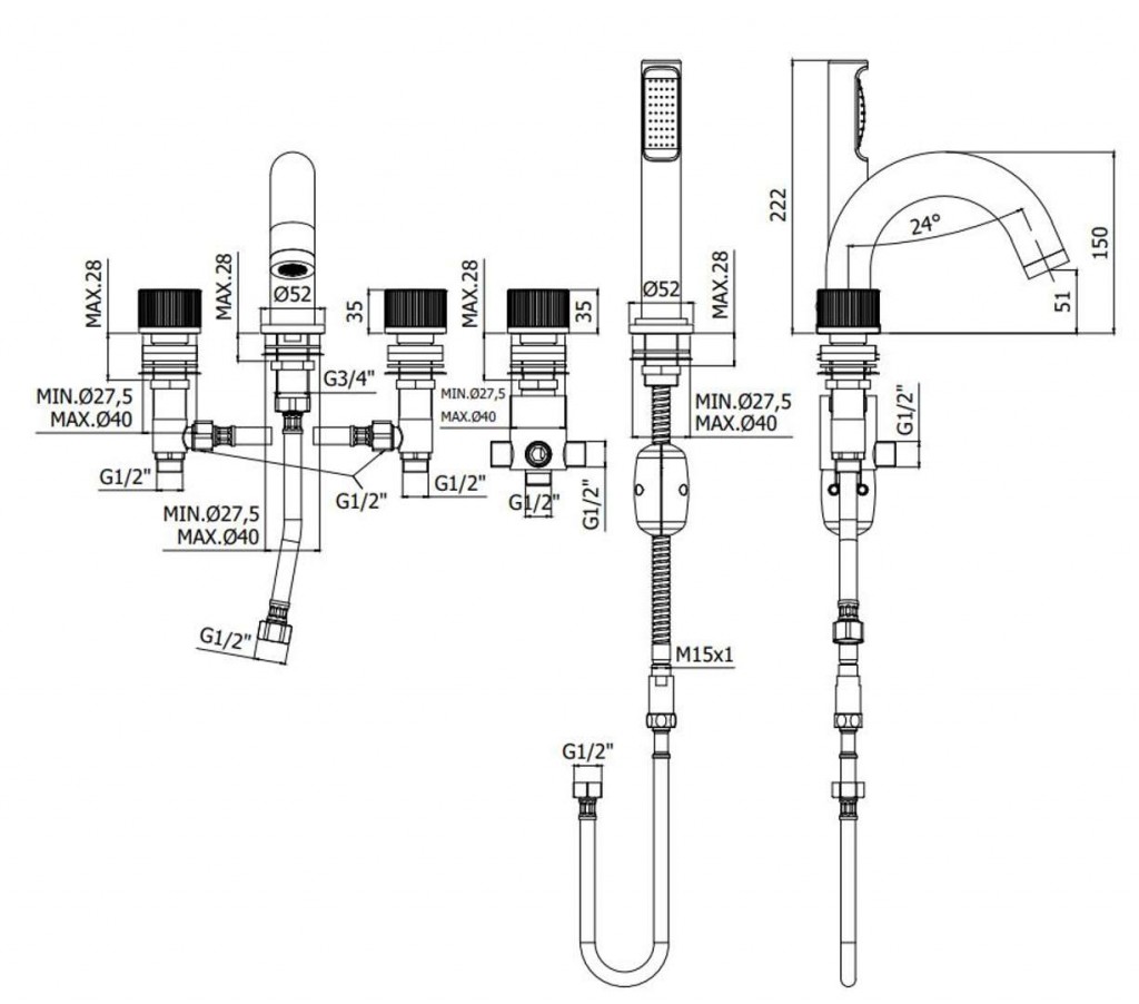 - balení obsahuje baterii, vanový výtok a tyčovou ruční sprchu MASTER