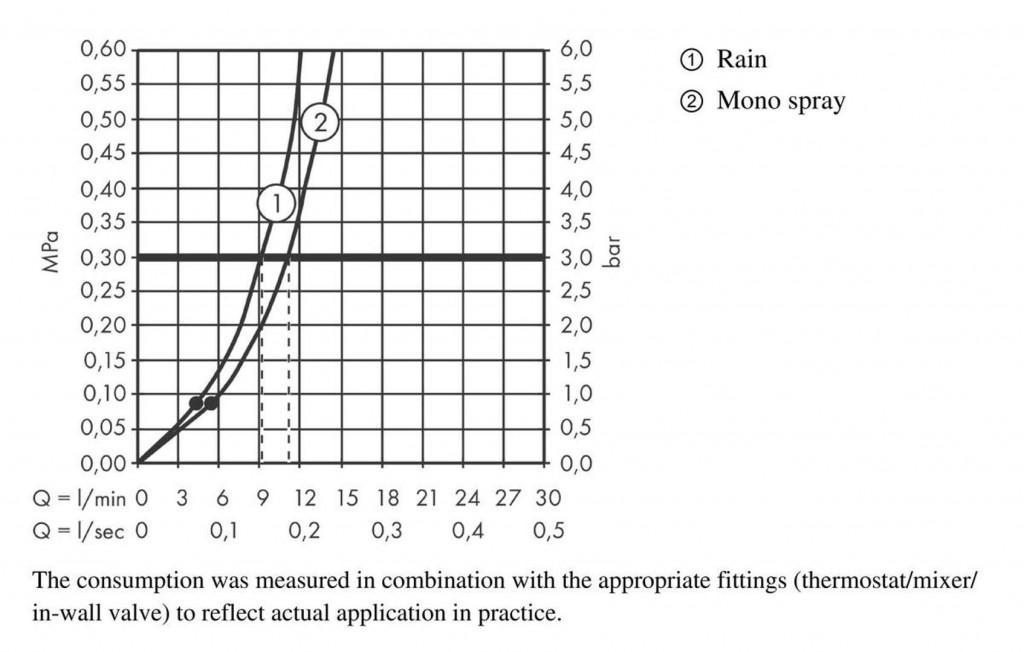 - průtok proud Rain: 11 l/min (tlak 3 bar)