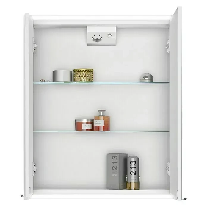 Vybavení: 2x křišťálové skleněné zrcadlové dveře, nastavitelné skleněné poličky, bezpečnostní zásuvka a vypínač