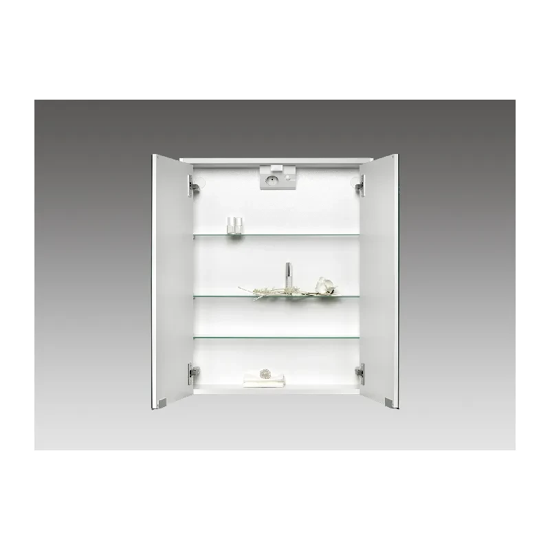 Vybavení: 2 křišťálové skleněné zrcadlové dveře, nastavitelné skleněné poličky, bezpečnostní zásuvka a vypínač, softclose