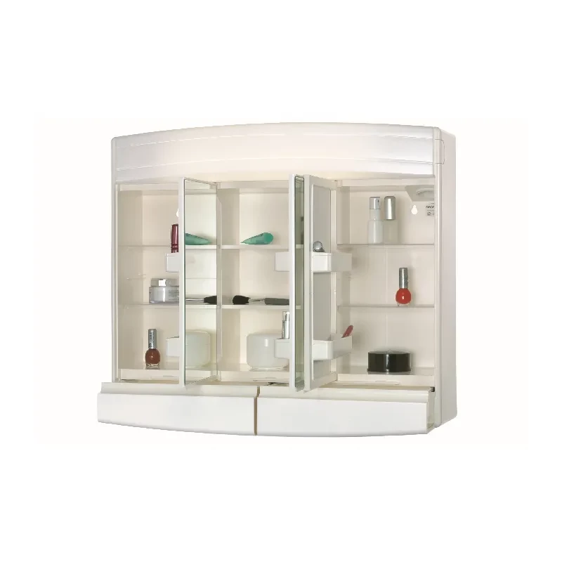 Vybavení: 3 křišťálové skleněné zrcadlové dveře, nastavitelné poličky, bezpečnostní zásuvka, 2 zásuvky