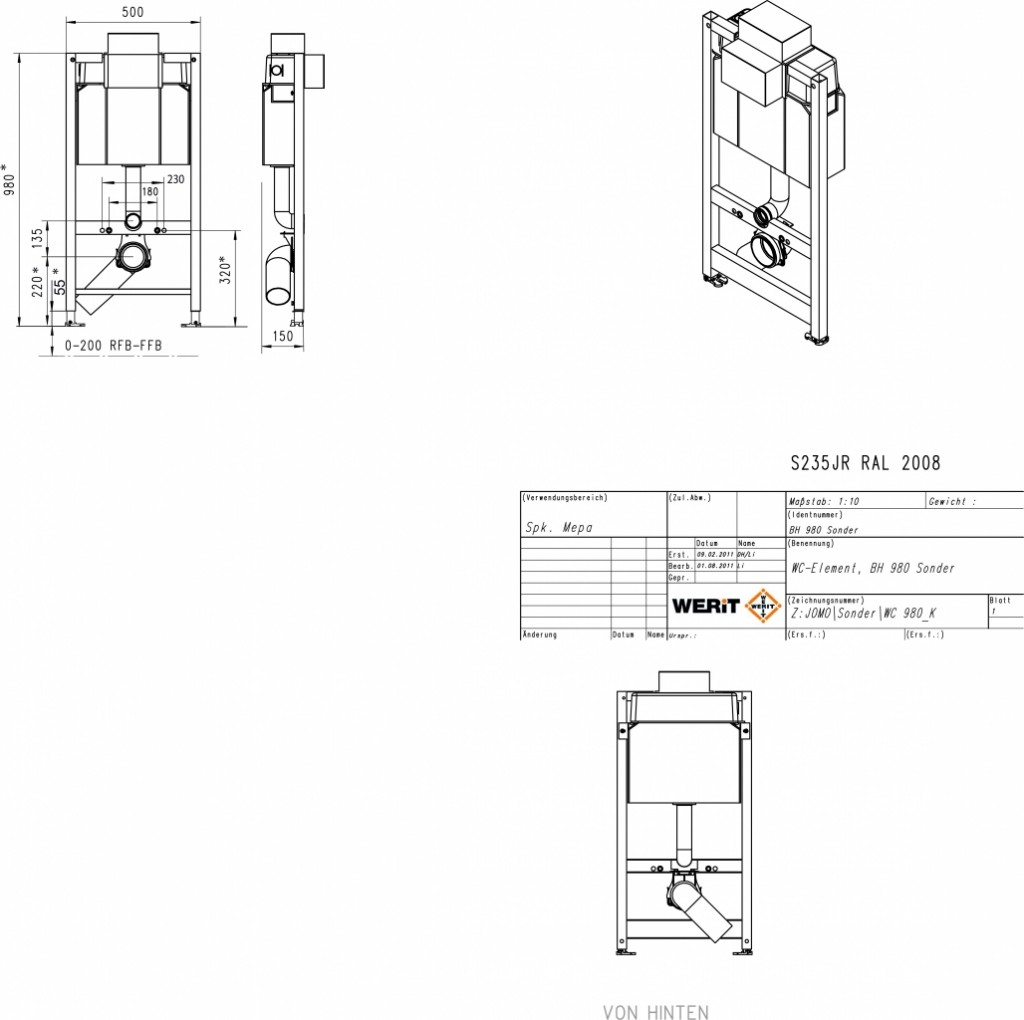 JOMOTech jednotlivý instalační modul pro WC s podomítkovým splachovačem SLS s dvojitým splachováním 3/6 l. Montážní výška 980 mm.