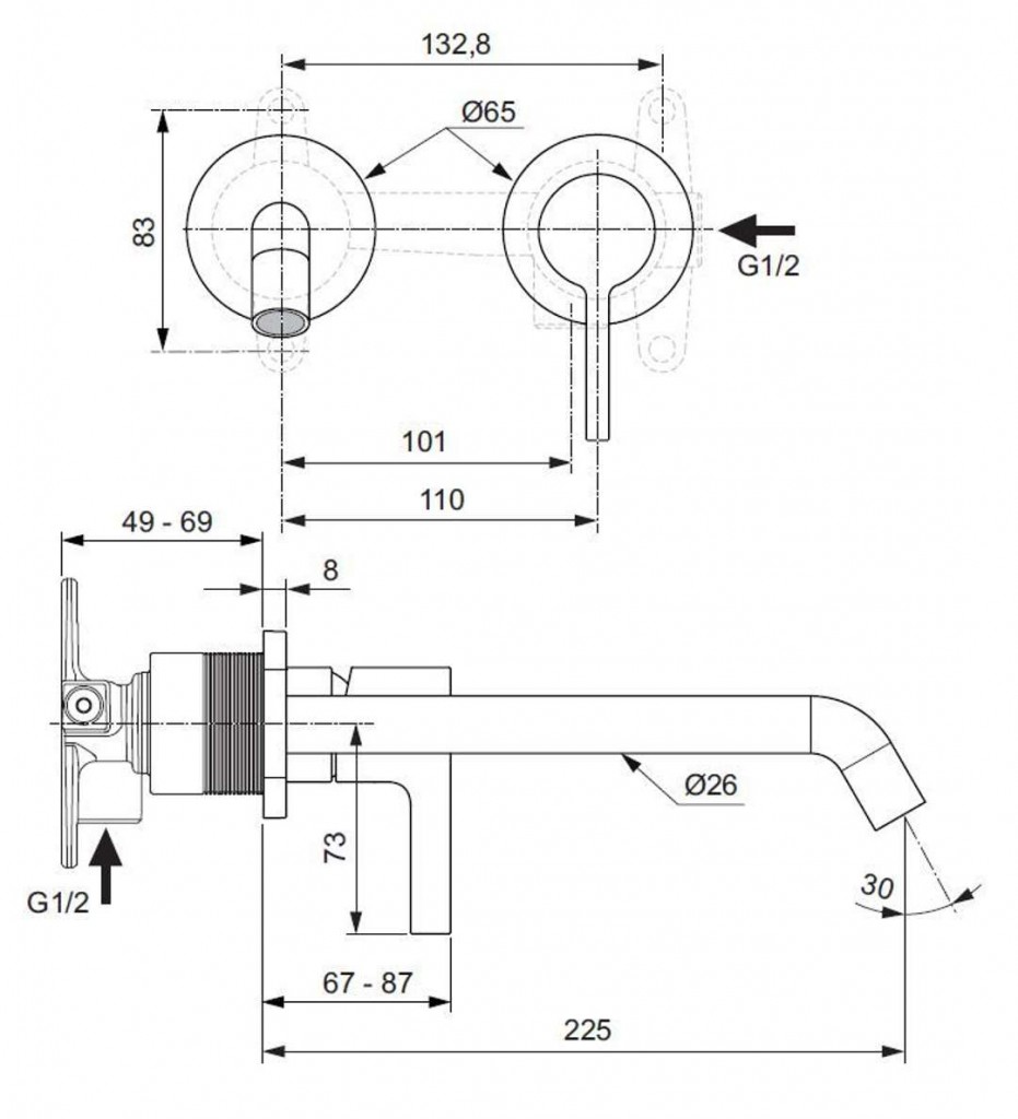 Podomítkové těleso není součástí dodávky, je nutné dokoupit zvlášť.