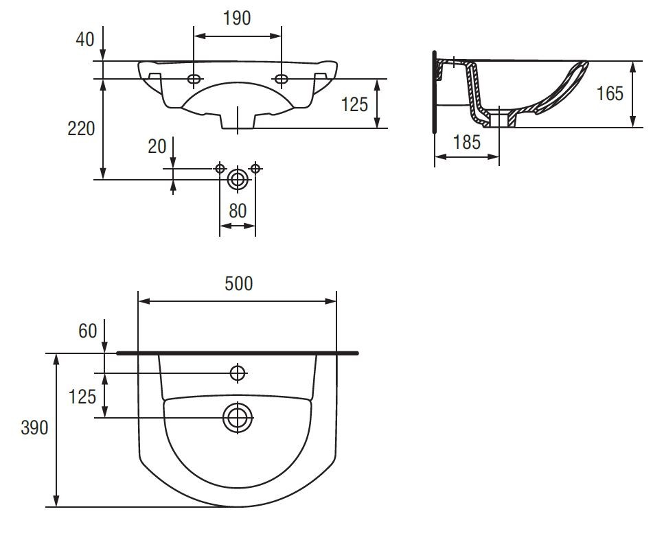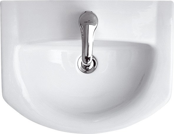 Nábytkové umyvadlo LIBRA 50 bílé barvy s otvorem pro baterii a přepadem. Je možné instalovat se skříňkou z řad BIANCO, ALPINA, DAHLIA, OLIVIA, MOCCA nebo instalovat ke stěně s chromovým sifonem.