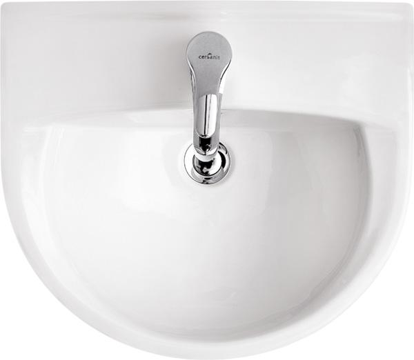 Závěsné umyvadlo PRESIDENT s otvorem pro baterii a přepadem /bez dekorativního kroužku na přepad/. Lze instalovat s ozdobným sifonem, s polosloupem nebo sloupem.