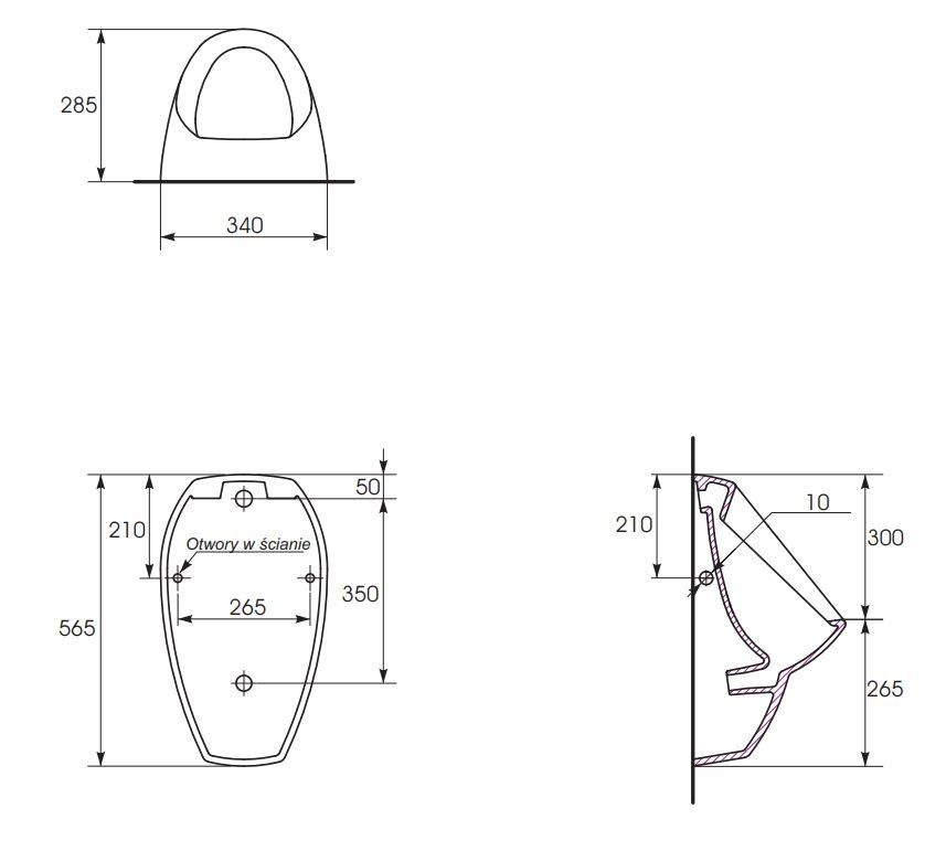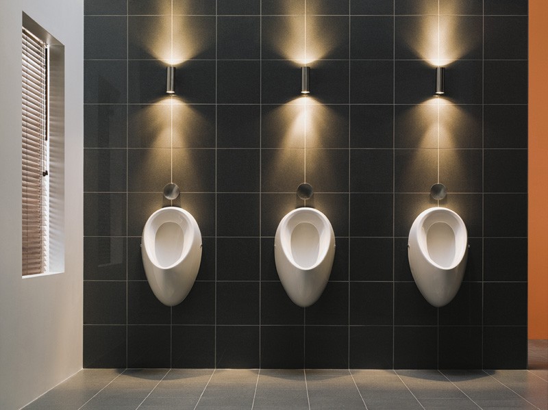 Pisoár APOLLO A100 se zadním přívodem vody a vodorovným zadním odpadem.