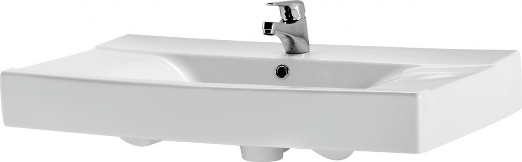 Nábytkové umyvadlo CARLA 90 bílé barvy s otvorem pro baterii a přepadem. Je možné instalovat se skříňkou z řad COBE, TAZA, XANTIA nebo instalovat ke stěně s chromovým sifonem.