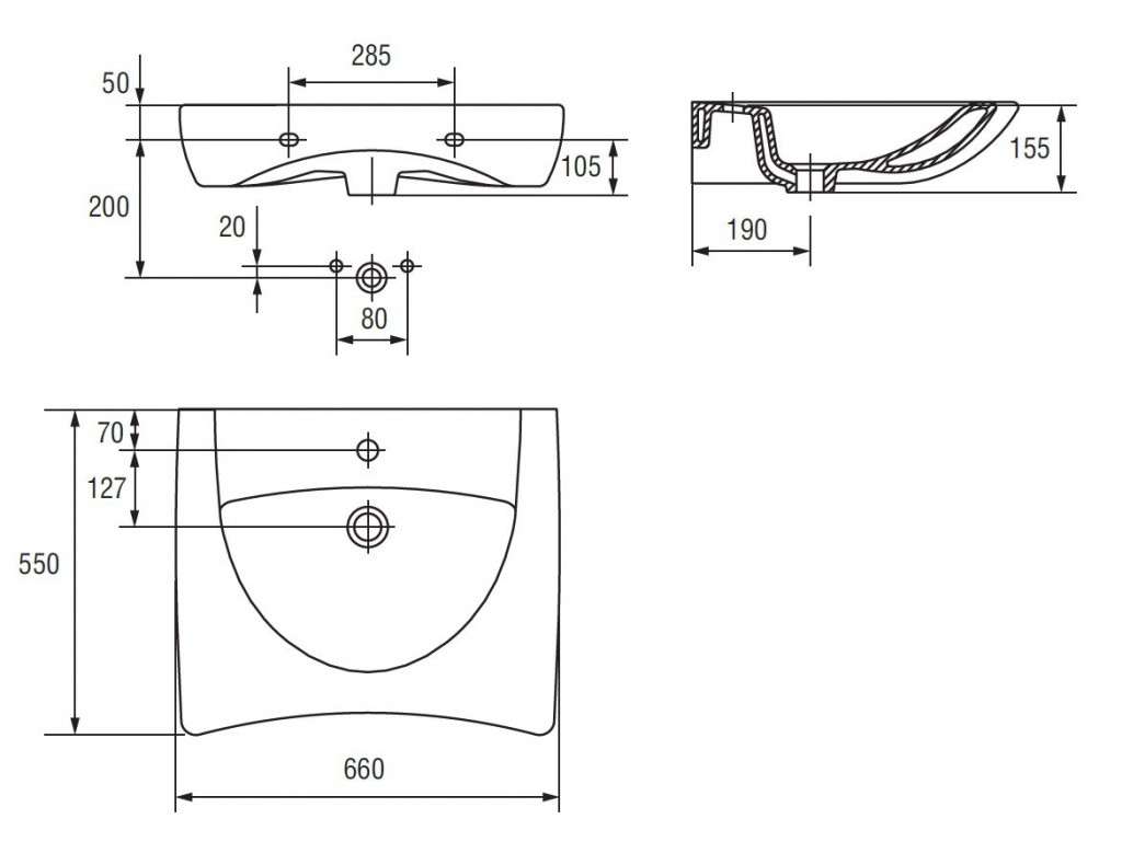 Umyvadlo ETIUDA s otvorem pro baterii a přepadem. Umyvadlo je určené pro tělesně postižené. Doporučená montáž s konstrukcí pod umyvadlo (K97-072).