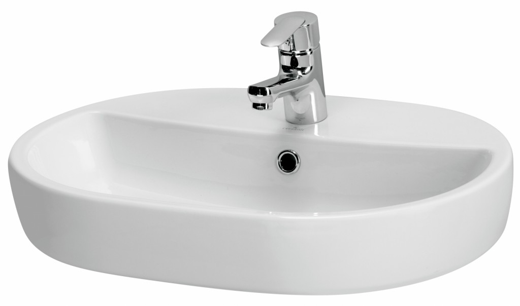 Umyvadlo CASPIA OVAl 60 bílé barvy s otvorem pro baterii a přepadem. Lze instalovat na desku nebo se skříňkou z řady STILLO.