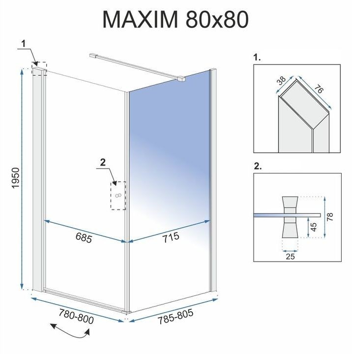 Krásný a mimořádně funkční sprchový kout Rea Maxim, který dokonale vyplní váš prostor v koupelně při zachování dokonalého vzhledu a estetiky interiéru. Dveře se otevírají na pevných masivních pantech, které poskytují pohodlí a bezpečnost používání.
