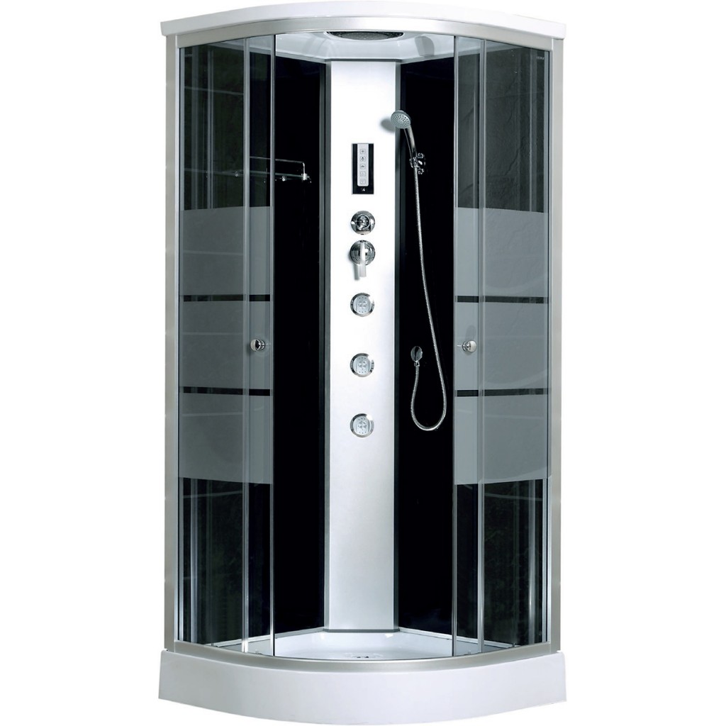Vybavení: rádio, ventilátor, halogenové osvětlení, dotykový ovládací panel, dešťová sprcha umístěná ve střeše, sprchová hlavice, 3 pevné hydromasážní trysky z PP, skleněná polička s hrazením.