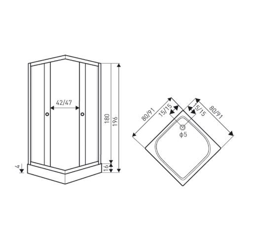 Bezpečnostní tvrzené sklo o tloušťce 4 mm je průhledné. Kout je dodáván s bílou akrylátovou sprchovou vaničkou, která je odolná a snadno se čistí.