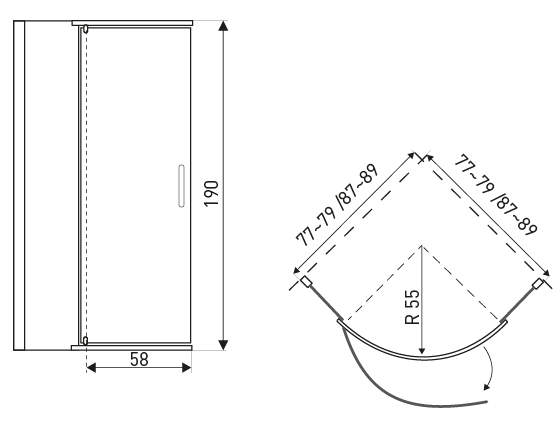 Sprchový kout je kompatibilní s vaničkami Aron, Alan a dalšími standardními čtvrtkruhovými sprchovými vaničkami o rozměrech 90×90 cm s poloměrem zakřivení R55.