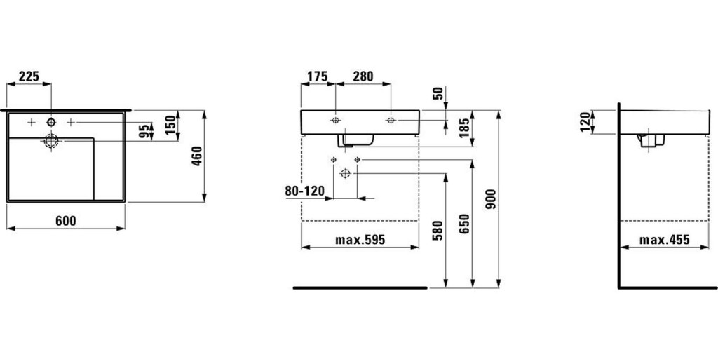 - s 1 otvorem pro umyvadlovou baterii uprostřed