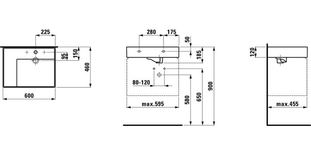 - bez otvoru pro umyvadlovou baterii (vhodné pro podomítkovou baterii)