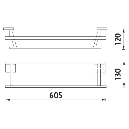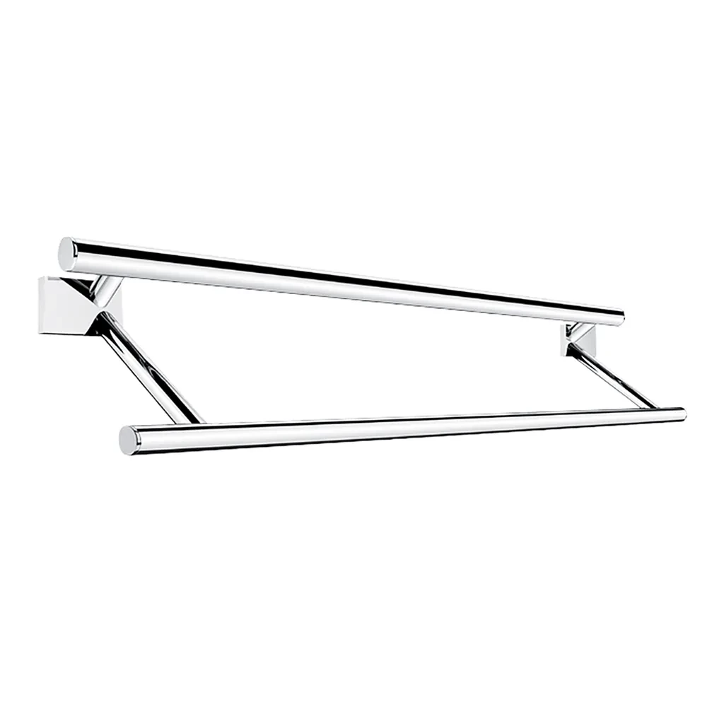 Držák na ručníky dvojitý. Délka 605 mm. Vnitřní šíře pro ručníky 500 mm. Materiál mosaz s povrchovou úpravou chrom.