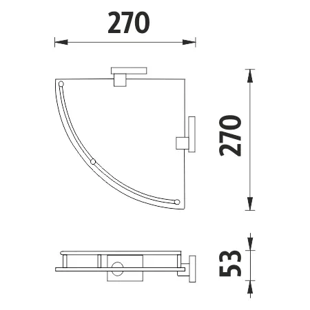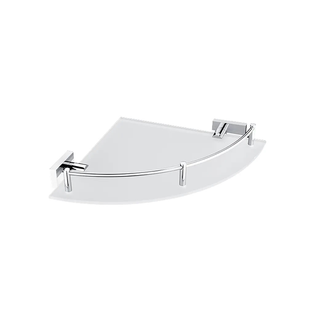 Police rohová s ohrádkou. Matované sklo. Rozměr 27x27 cm.