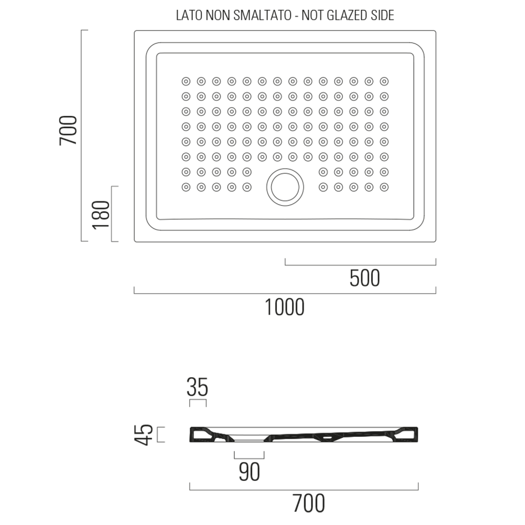 Boky vaniček, které jsou neglazované (určené k zazdění do zdi, či pod obklad), jsou na technickém výkresu označeny "not glazed side".