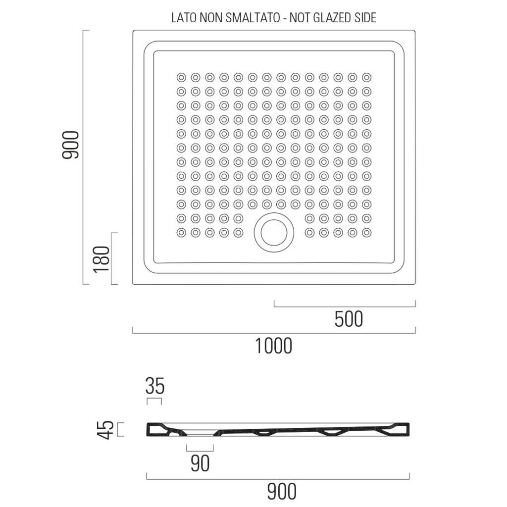 Boky vaniček, které jsou neglazované (určené k zazdění do zdi, či pod obklad), jsou na technickém výkresu označeny "not glazed side".