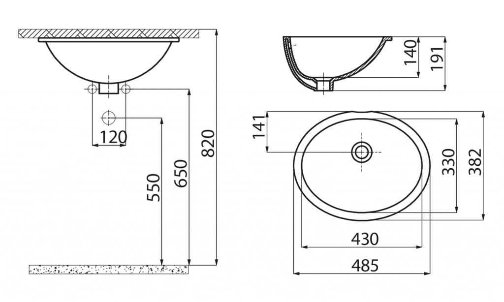 - Instalace zapuštením pod desku, k desce se lepí pomocí silikonu.