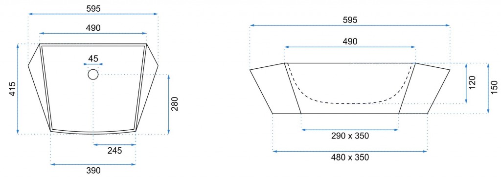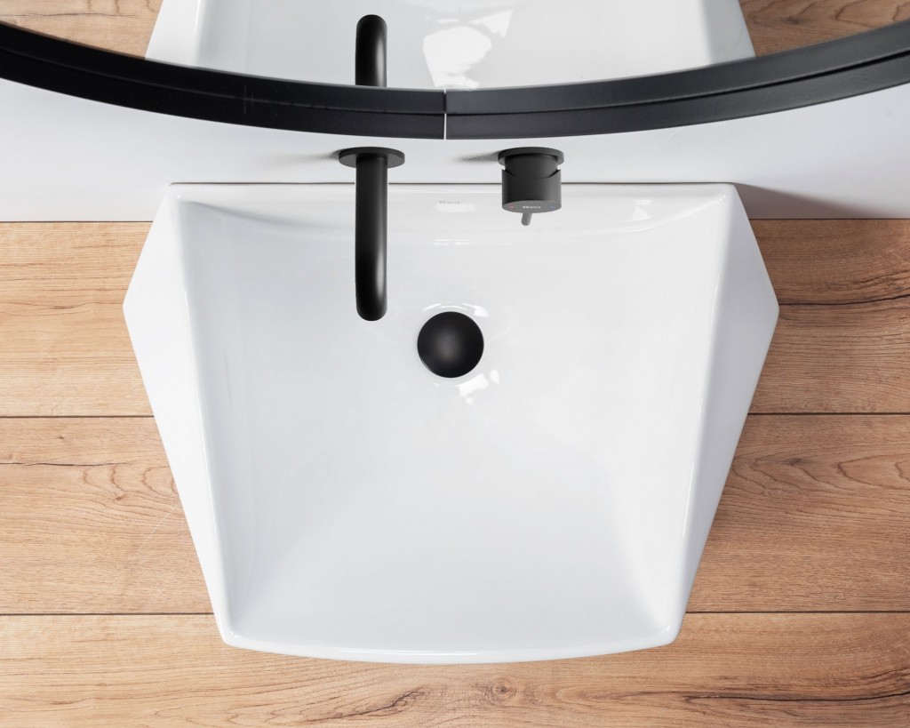 Samotné umyvadlo na desku je dlouhé 59,5 cm a hluboké 41,5 cm. Umyvadlo nemá bezpečnostní přepad a je bez otvoru pro baterii. Proto k němu vybírejte nástěnnou baterii. Vždy se snažte vybírat takovou, aby ústí kohoutku směřovalo doprostřed umyvadla. Jedině tak zabráníte nechtěnému rozstřikování vody a zároveň budete mít dostatek prostoru pro mytí rukou. Vhodné je kombinovat s klasickou nástěnnou baterií nebo podomítkovou baterií, která podpoří moderní a minimalistický vzhled koupelny.