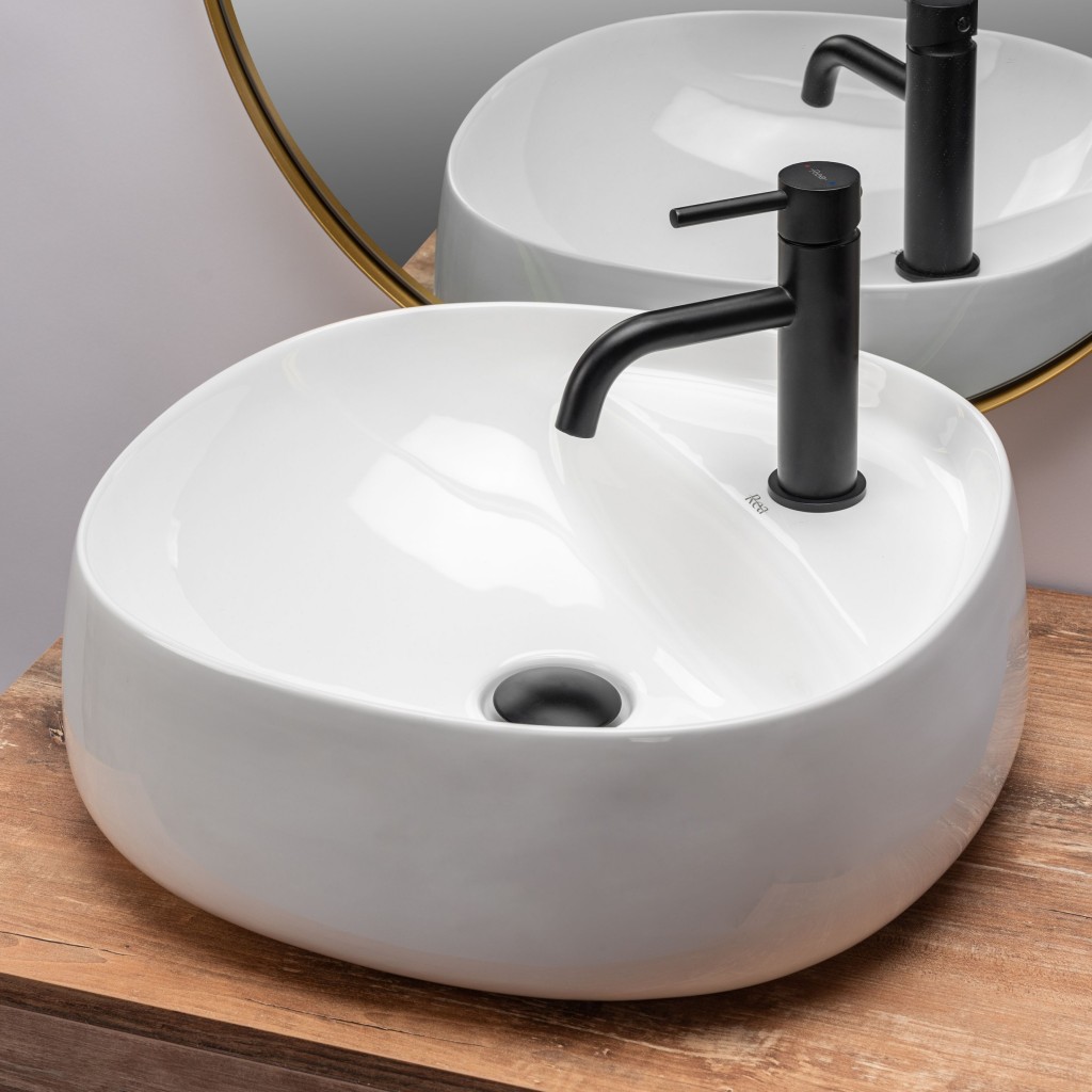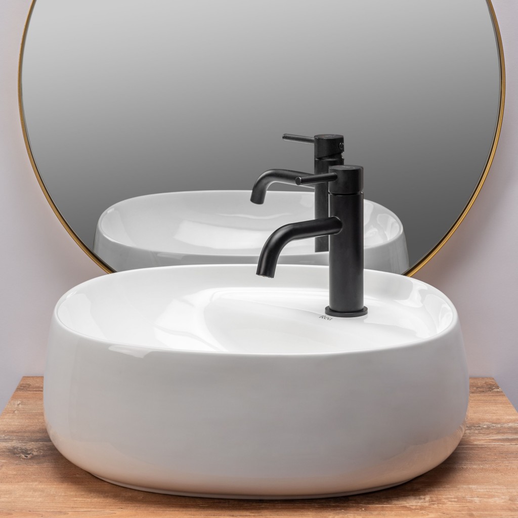 Krásné a moderní umyvadlo na desku Rea Pola, které se vyznačuje mimořádnou funkčností je vyrobeno ze 100% vysoce kvalitní sanitární keramiky, která zaručuje trvanlivost po mnoho let používání. Umyvadlo je velmi odolné vůči nečistotám a poškrábání a další výhodou je snadné všeobecné čištění díky neobvyklé formě. Jednoduchý tvar dokonale vyplní jakýkoli prostor koupelny při zachování dokonalého vzhledu a estetiky interiéru. Umyvadlo se perfektně hodí do moderních koupelen i do koupelen v klasickém a retro stylu.