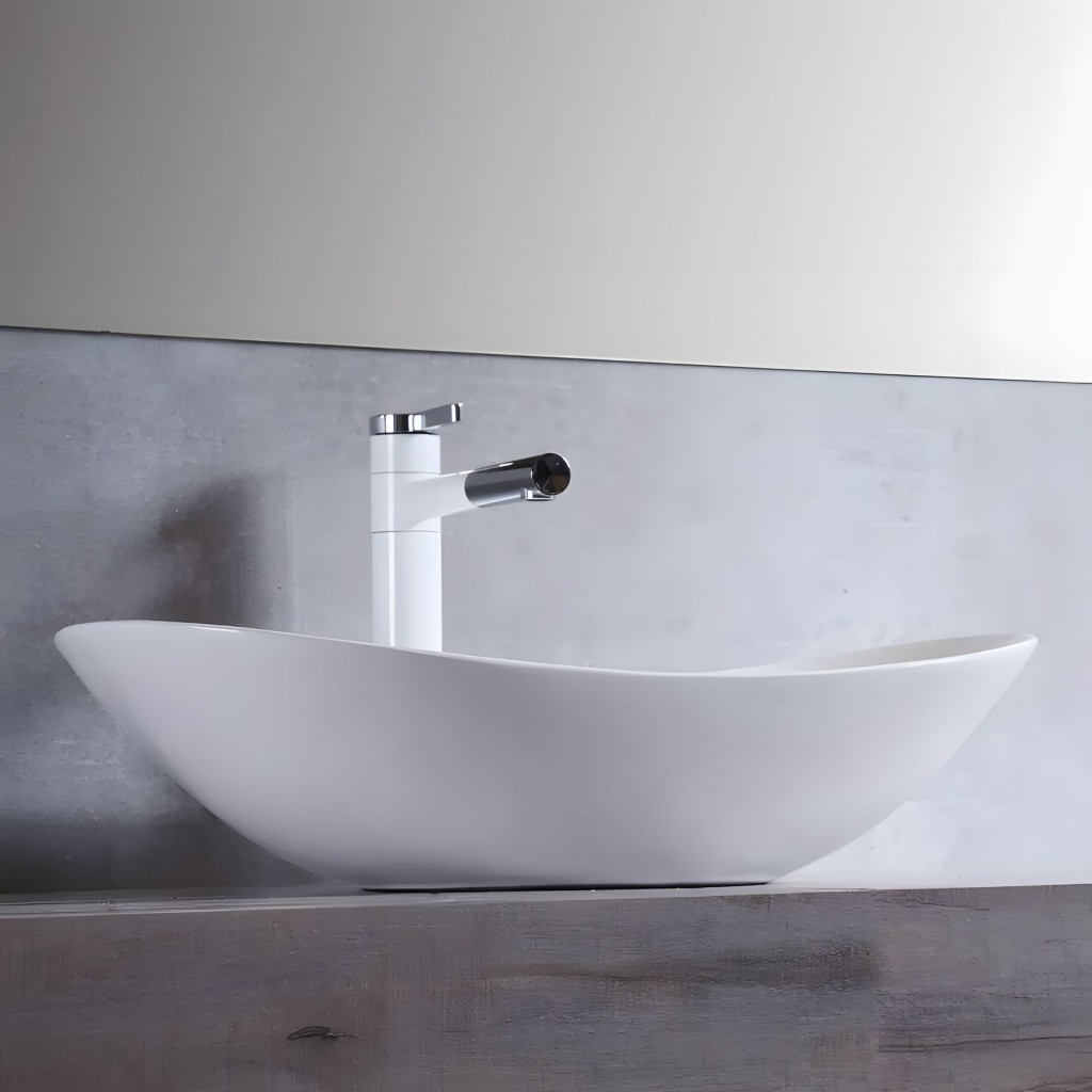 Součástí balení umyvadla na desku Royal není baterie ani výpusť.