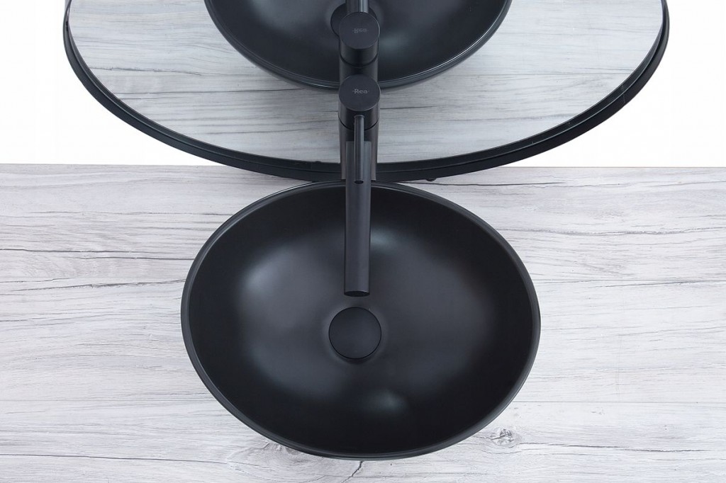 Nový model umyvadla na desku Rea Sofia je v naší nabídce velmi oblíbený. Umyvadlo je vyrobeno z nejkvalitnější sanitární keramiky, která je velmi odolná a snadno se čistí. Umyvadlo je černě matné, což přispívá k úžasnému efektu v každé koupelně a je určeno k montáži na desku nebo skříňku. Bude dokonale ladit s jakoukoli barvou podstavce, na kterou bude umyvadlo instalováno.