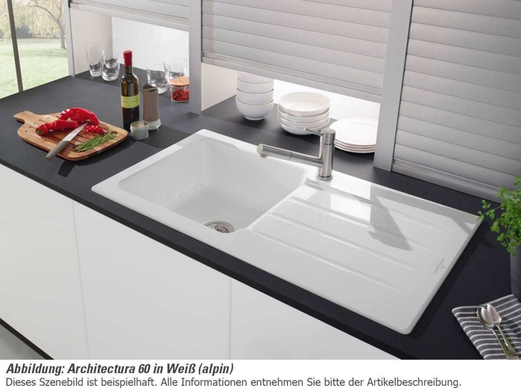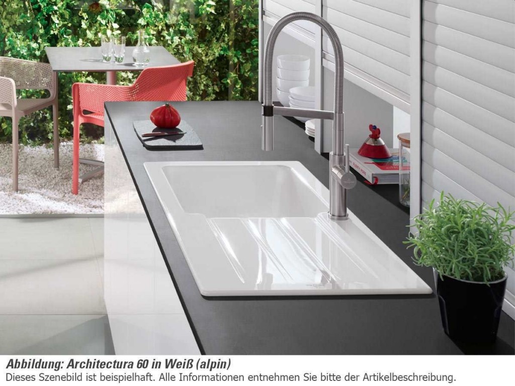 Kuchyňské dřezy Architectura mají klasický, známý design, který dokonale vyhovuje různým stylům nábytku. Díky rafinaci CeramicPlus se nečistoty a vápno rozpustí téměř automaticky.