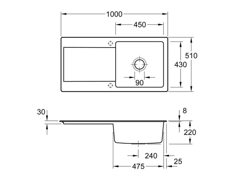 - rozměry dřezu: 1000 x 510 mm