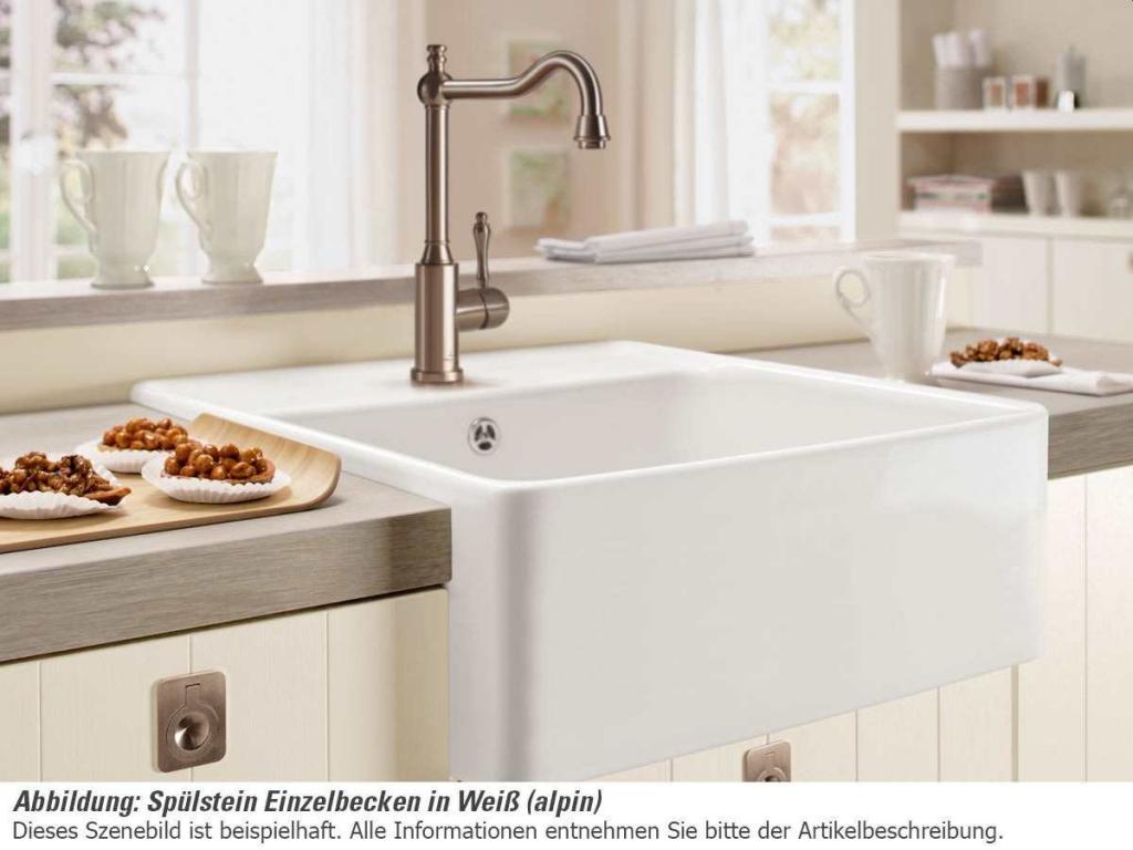 Keramický dřez modulový, bez excentru, barva White alpin, šířka 59,5 cm, s otvorem pro baterii č.2