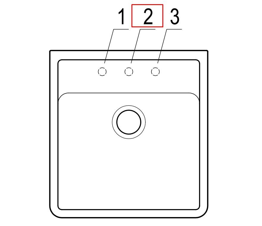 - Dřez obsahuje střední otvor pro baterii č.2 - viz nákres
