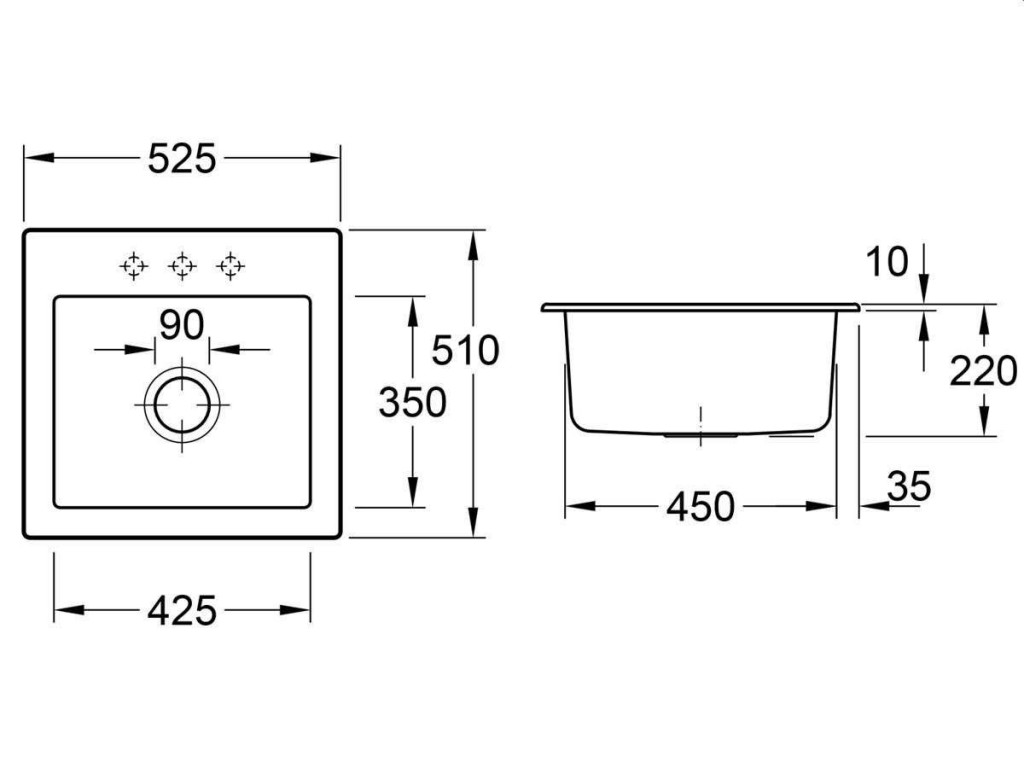 - rozměry dřezu: 525 x 510 mm