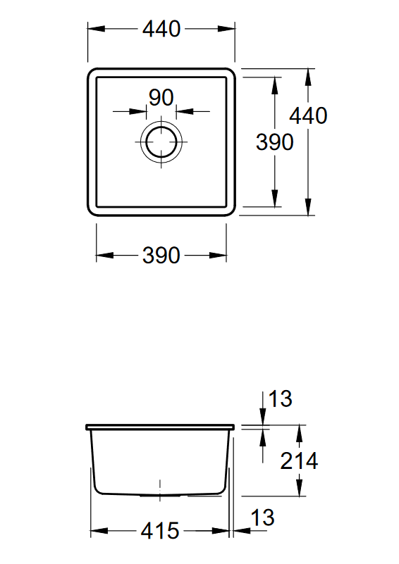 - Rozměry dřezu (ŠxHxV): 440 x 440 x 214 mm
