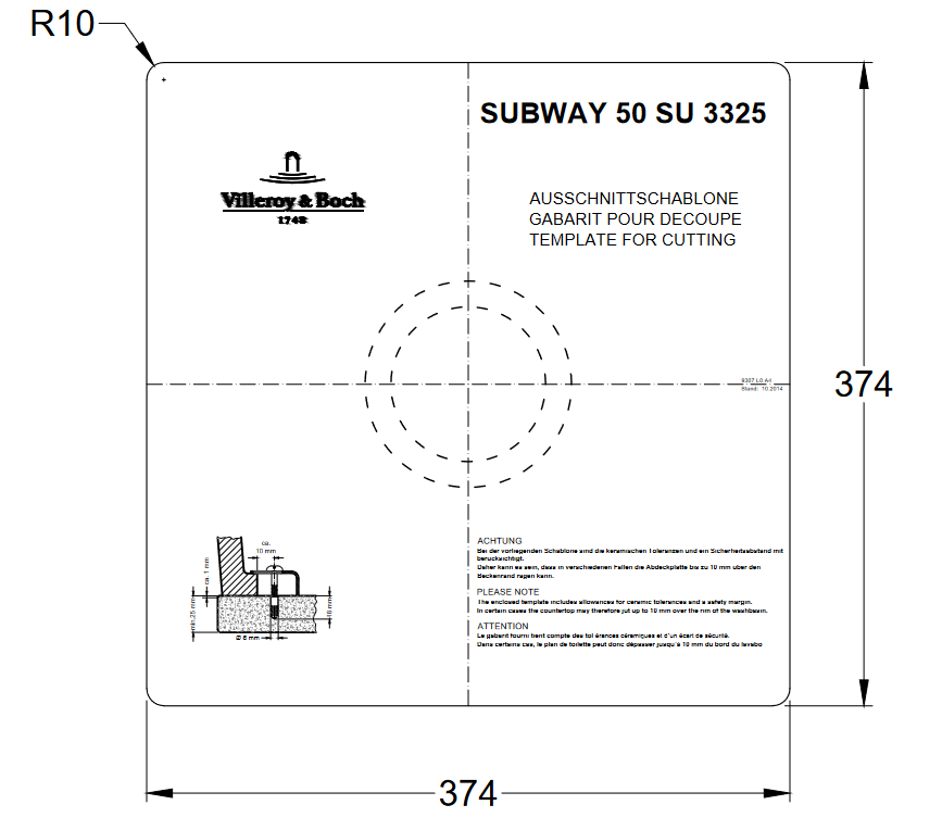 - Rozměry výřezu (ŠxH): 374 x 374 mm, R10