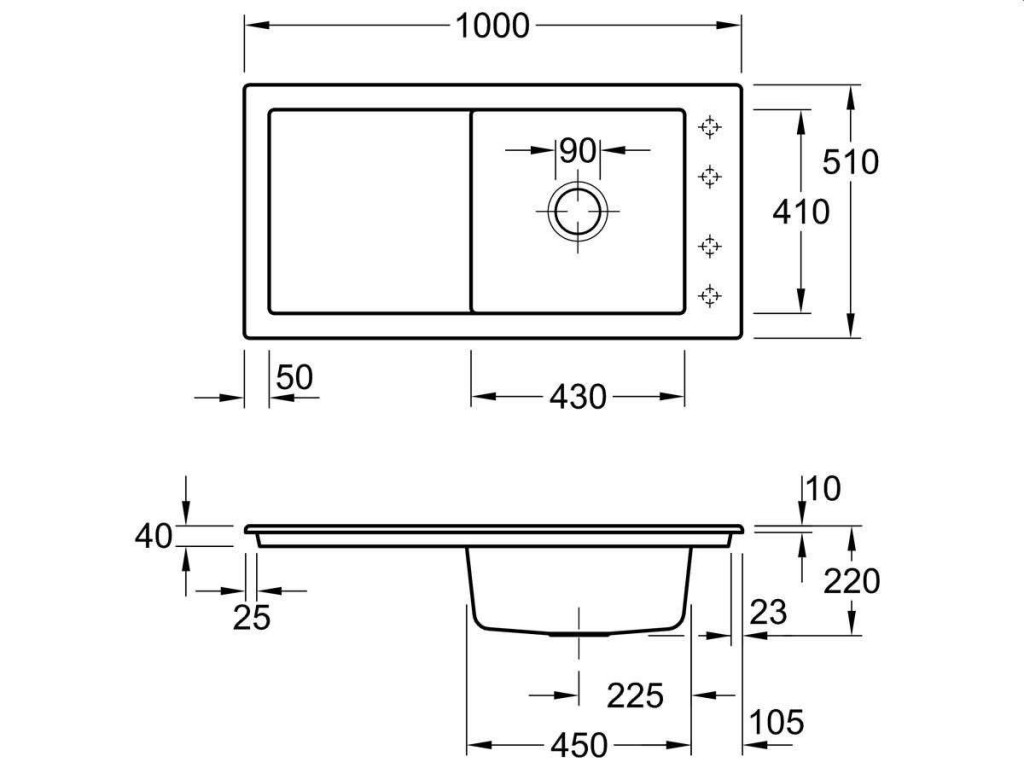Keramický dřez Timeline 60 Ivory nástavný 1000 x 510 bez excentru (679001FU)