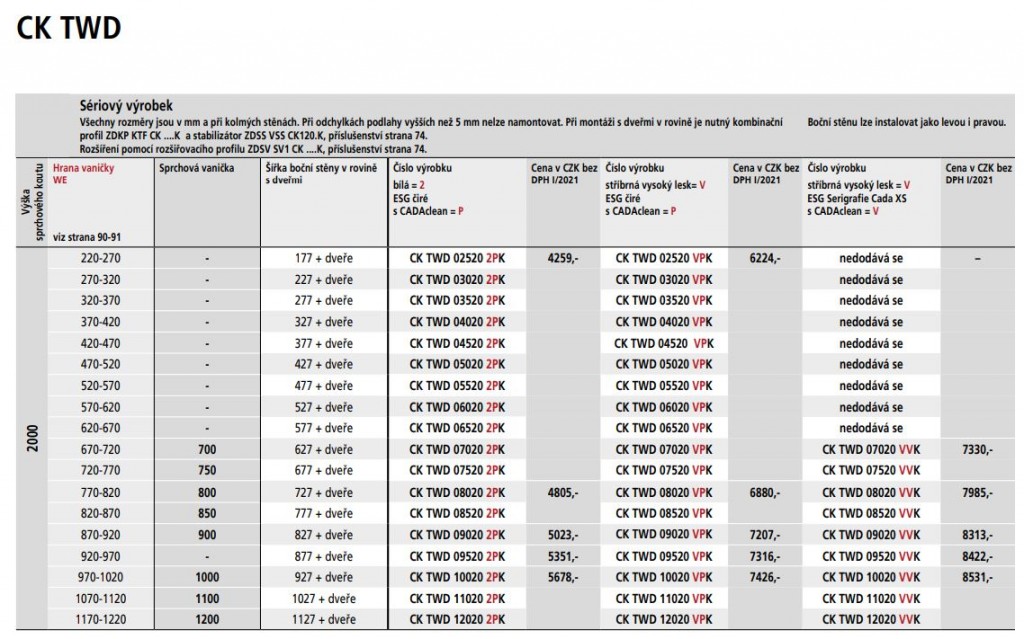 - Pro kombinaci se všemi Cada XS dveřmi v rohu, v rovině a pro U-kabinu (kromě CK 1KR/L a CK 1NR/L.).