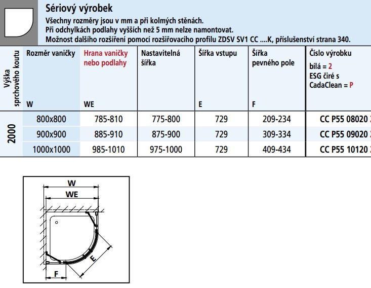 - Sprchové kouty Kermi jsou určeny k montáži na vaničku resp. na podlahu. Při jiném způsobu instalace je třeba zajistit srovnatelné instalační podmínky (utěsnění napojení na dlažbu, spád, ...).